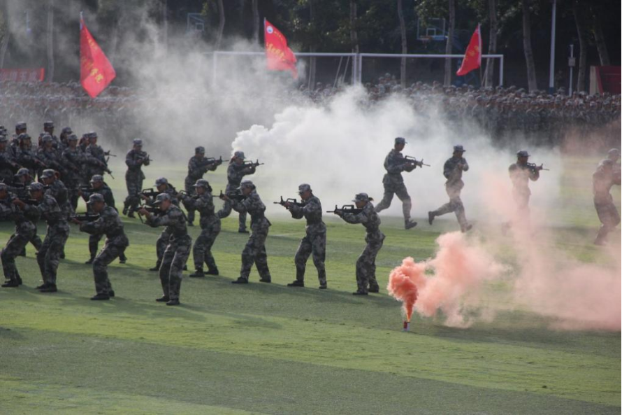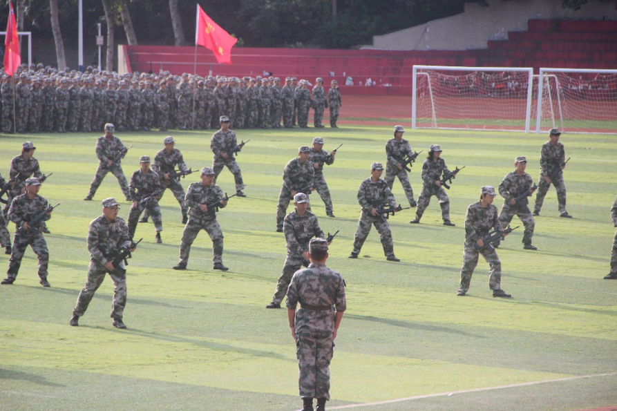 伴随着国歌响起,五星红旗冉冉升起,军训表彰大会正式拉开帷幕。在成果汇报环节,25级新生们开展了刺杀操和战术演练等军训成果展示。身着整齐迷彩服,动作刚劲有力,整齐划一,25级新生展现出顽强拼搏的精神和扎实的军事素养,彰显坚定意志和团结精神。