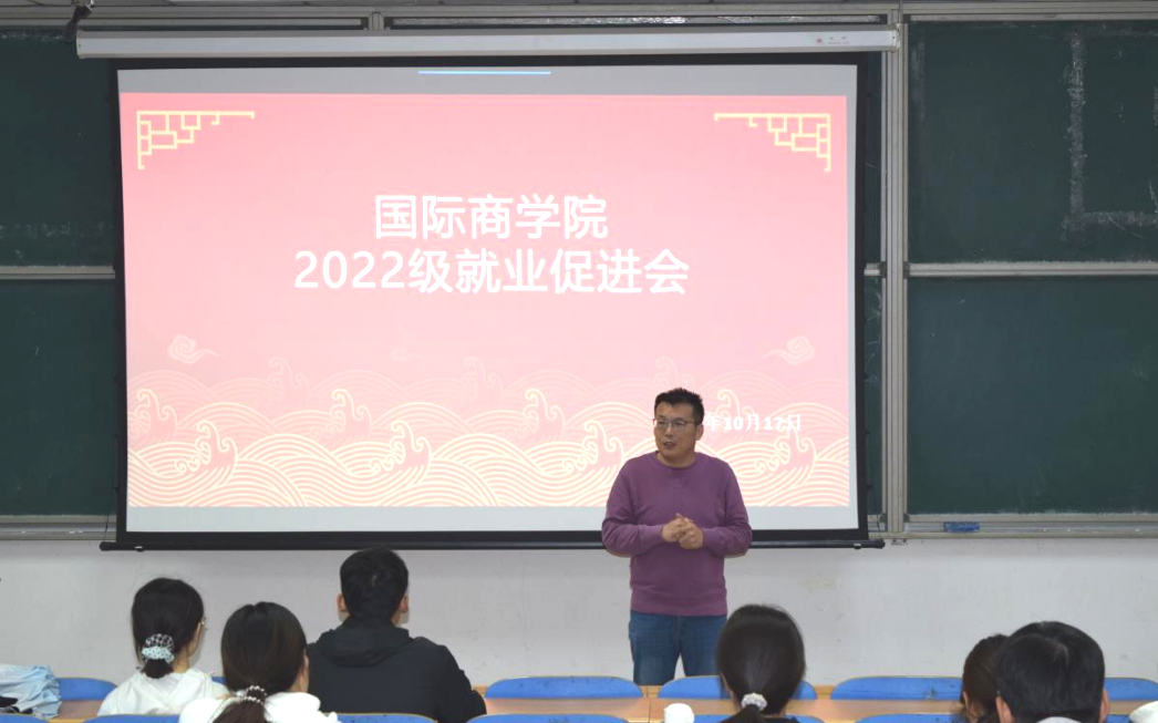 为帮助2022级学生明确就业与升学方向,做好学业及职业生涯规划,10月17日下午,国际商学院于西校逸夫楼二教2110教室召开2022级就业促进会,本次会议由国际商学院院长陈彦亮教授主讲,2022级全体学生参加。