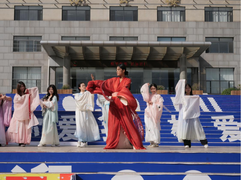 活动伊始,汉韵风华社成员身着不同纹样、色彩的汉服整齐亮相,节目《奔腾》通过静态展示、动态走秀吸引众多同学驻足。社团成员们细致讲解不同汉服的历史渊源、制作工艺及纹样寓意,现场设置试穿体验区,感兴趣的同学可亲身感受传统服饰的版型美感与文化底蕴。精致的裙裾、灵动的走秀表演,不仅展现了社团对传统文化的传承热情,更让现场师生直观领略到汉服所承载的东方美学。