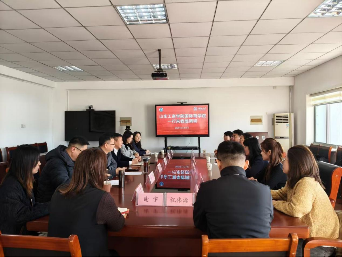 为扎实推进新时代高校建设工作,推动学院中外合作办学提质增效,加强与兄弟院校的交流沟通,11月18日,国际商学院党委书记肖烨、团委书记杨春娟一行7人赴济南大学商学院参观调研。