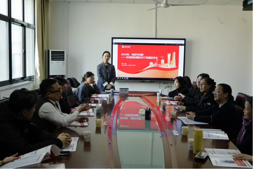 为深化产教融合协同育人机制,搭建理论知识与行业实践的桥梁,2026年1月15日,国际商学院与长江证券一行在逸夫楼3429会议室开展校企共建座谈会。我院优秀校友、长江证券青岛分公司负责人庞健带领投顾团队出席,国际商学院党委书记肖烨、部分教研室主任及教师参加,围绕市场趋势与ETF配置进行了深入交流。