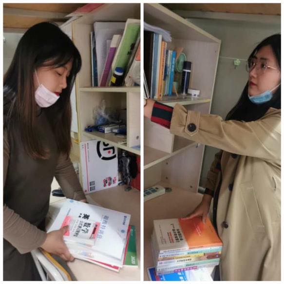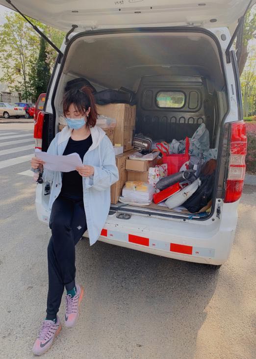 辅导员们在工作人员的帮助下将学生们的物品搬运到宿舍楼下,联系快递公司寄送物品。大到重达几斤的书籍,小到几张纸质的证明,细心加耐心,成百上千个的“爱心包裹”每天从辅导员的手中陆续发往全国各地。