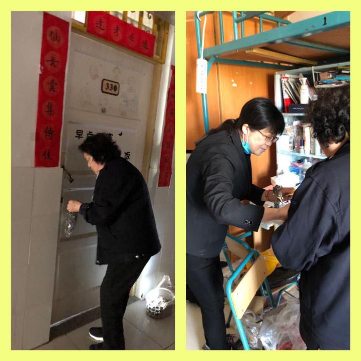 国际商学院的辅导员们在宿管阿姨的帮助下进入宿舍“上门取件”,开启“客服”模式,与同学们视频通话,准确询问同学们的需求。