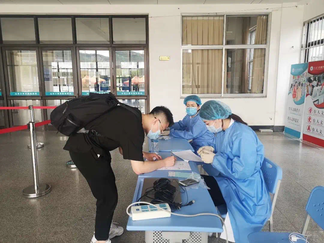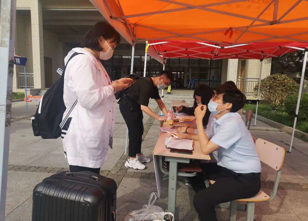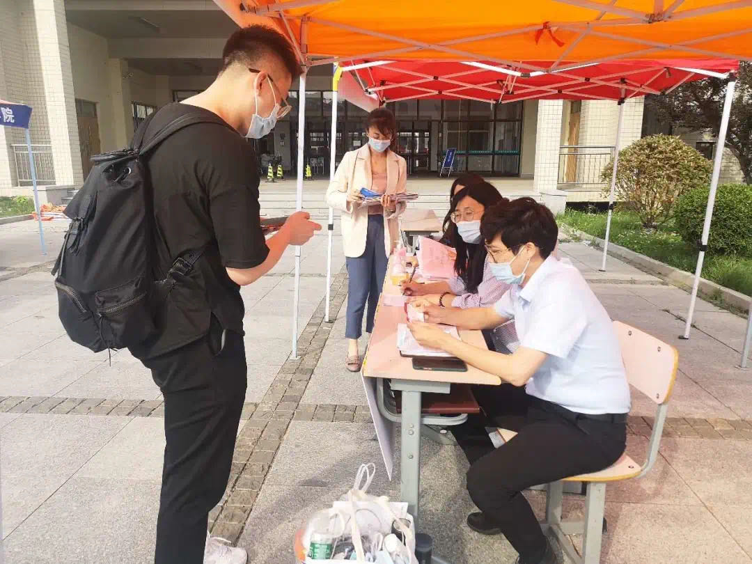 报道点处学子们规范、有序地排队,导员老师们亲切的询问大家返程状况。学生登记、核对车票信息以及提交承诺书和信息表,随后领取宿舍单和防疫包。上述环节结束后,学生进入一教大厅进行核酸检测,检测完毕后前往宿舍休息。