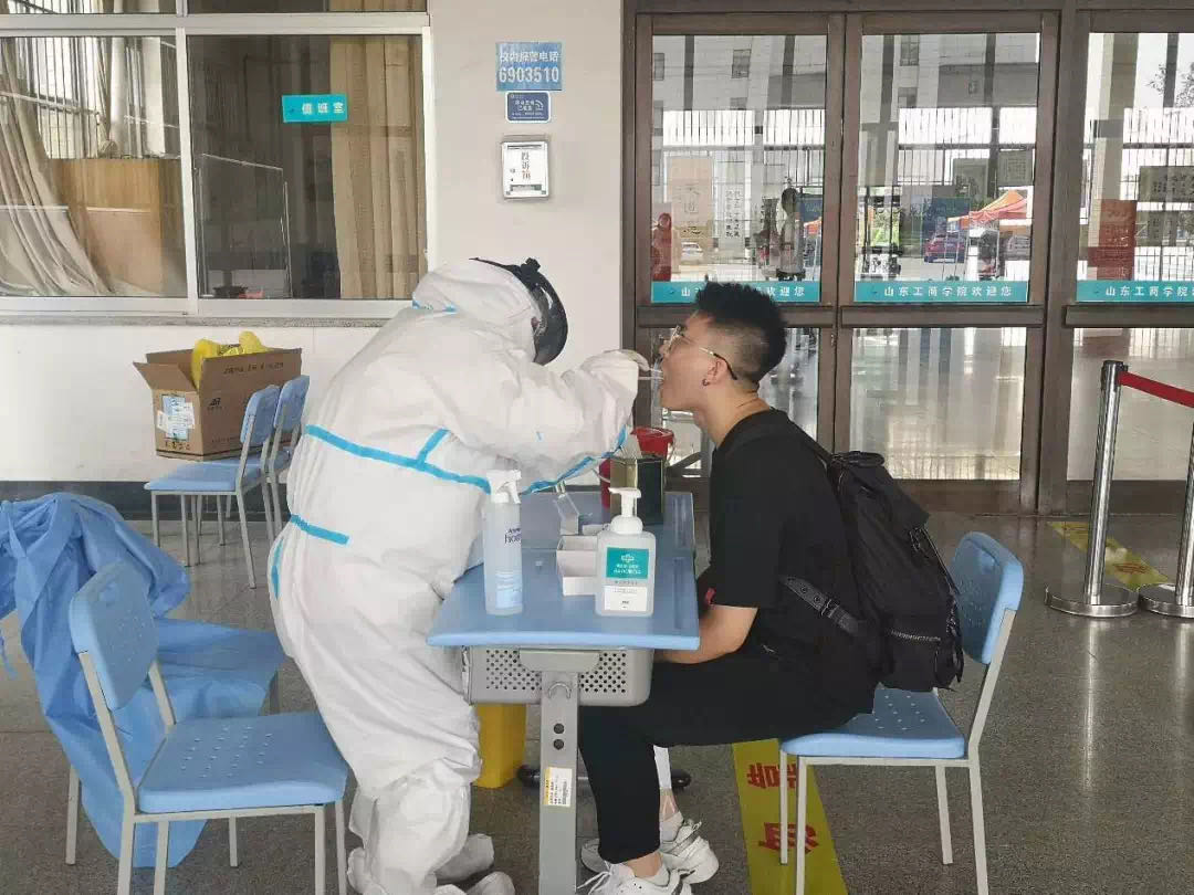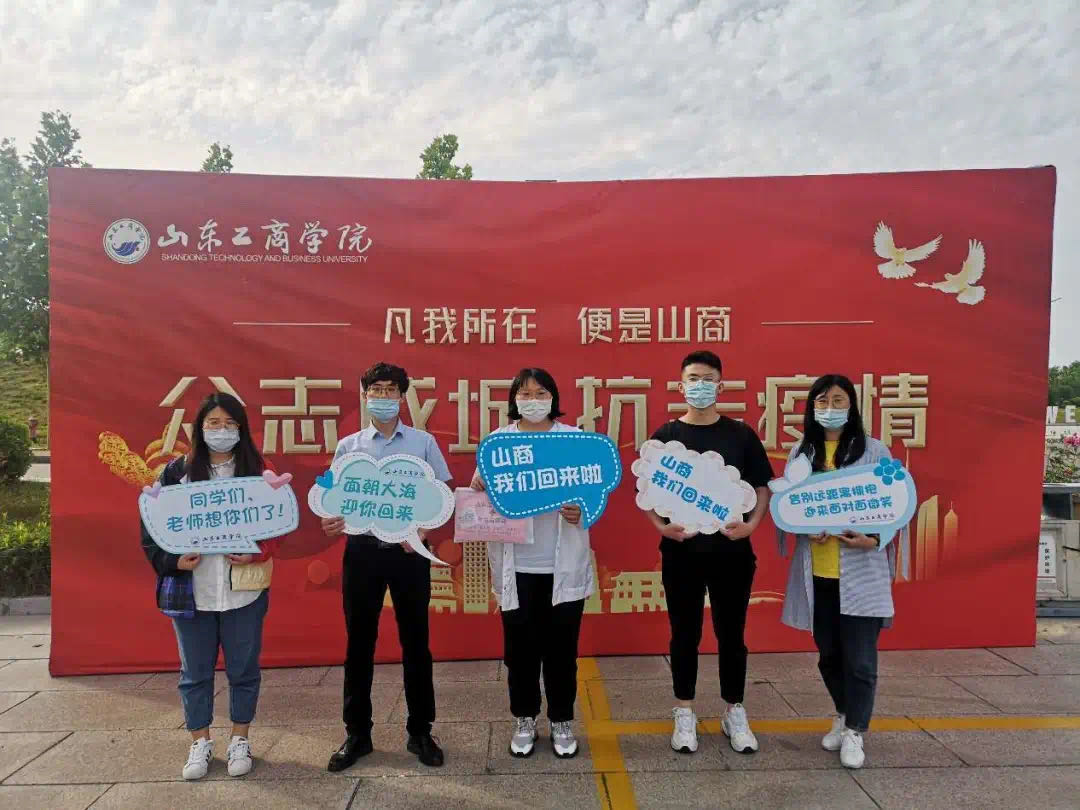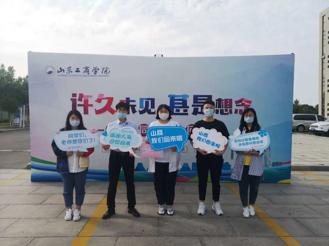 学校在烟台站、烟台南站、蓬莱机场等地点安排接站、接机点,迎接返校学子。返校学生出示校园卡、山东省健康码,经过学校测温棚检测后进入山商校园,到达国际商学院指定报道点。