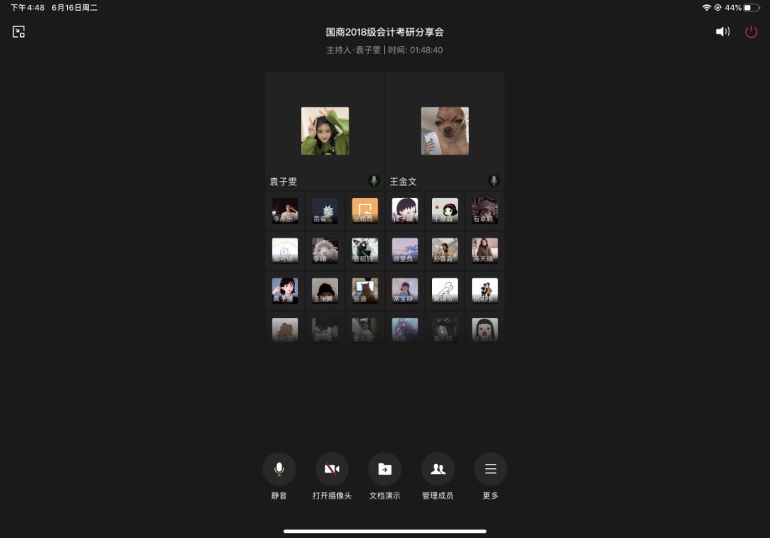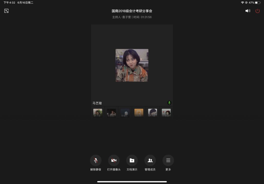 6月16日下午,国际商学院2018级会计专业在企业微信开展考研出国经验分享会,辅导员杨春娟主持,考研出国的优秀学生及2018级100余名学生参加。