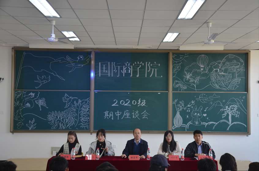 为深入了解学院的教育教学情况并广泛征求学生意见,10月21日中午,国际商学院于逸夫教学楼举办2020级期中教学座谈会,国际商学院副院长谢孟军,2020级辅导员刘方瑶、宋璐琪、张腾震以及教师代表刘杰出席,2020级各班学生代表参加此次座谈会。