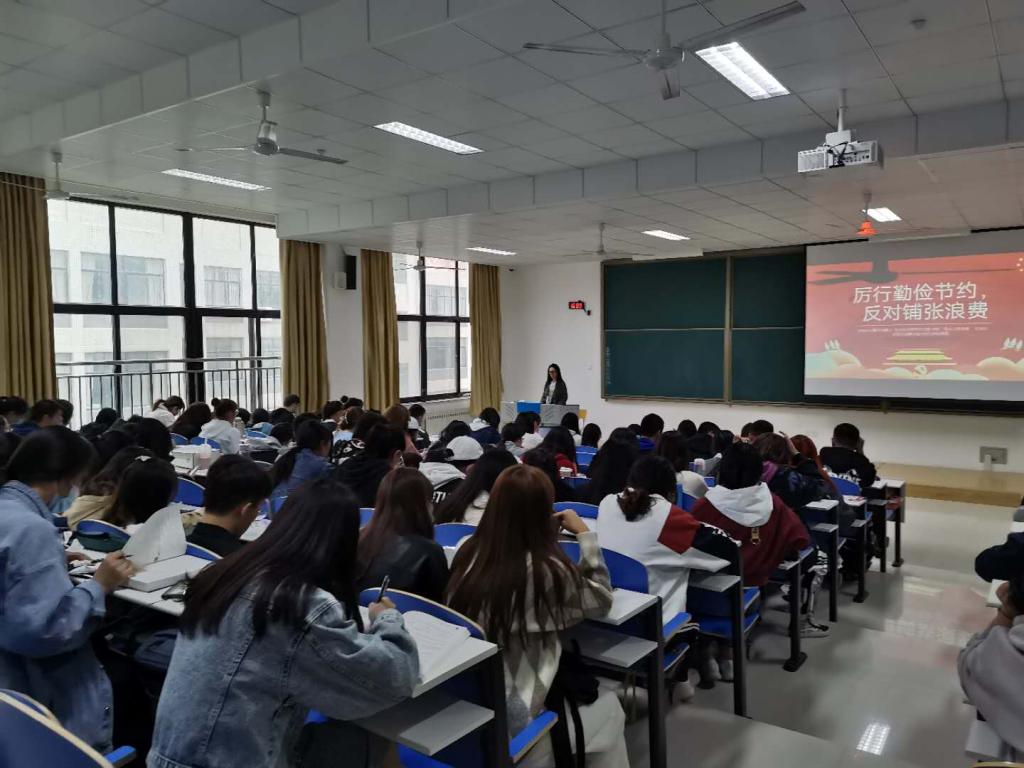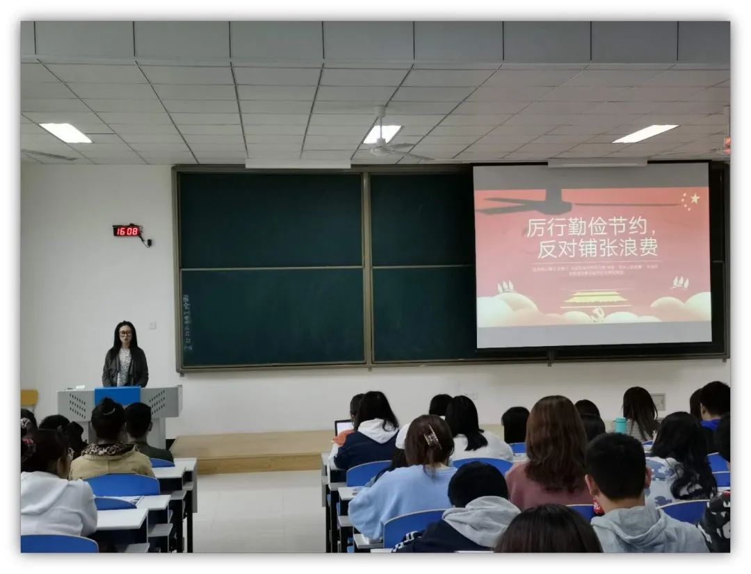 为深入贯彻习近平总书记有关“厉行勤俭节约,反对铺张浪费”的讲话精神,增强勤俭节约意识。10月14日,国际商学院于逸夫楼举办“厉行勤俭节约,反对铺张浪费”主题讲座,2019级辅导员王艺橙老师出席此次活动。