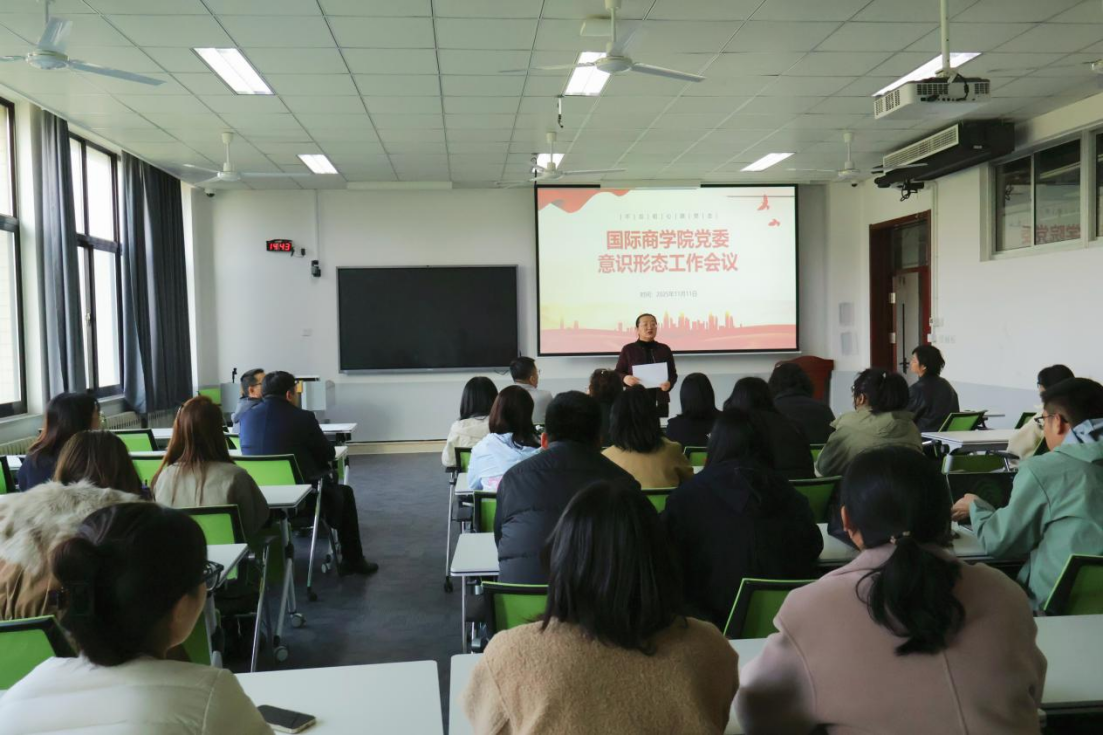 为筑牢校园意识形态安全防线,切实提升全院教职工的思想引领能力,11月11日下午,国际商学院于逸夫楼3222教室召开国际商学院党委意识形态工作会议。会议由国际商学院党委书记肖烨主持,国际商学院领导班子及全体教职工参加。