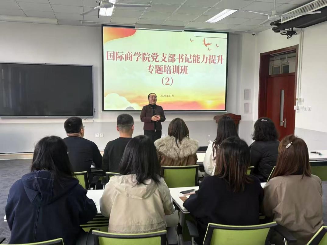 为深入贯彻新时代党的建设总要求,推动基层党建工作提质增效,11月11日上午,国际商学院于西校区逸夫楼3222教室召开国际商学院党支部书记能力提升专题培训班。本次培训由我院党委书记肖烨主讲,学院全体党支部书记参加。